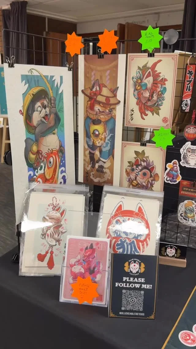 A small starter bundle for anyone who enjoys Japanese folklore inspired artwork. This set includes a sticker pack, an acrylic key charm, and an illustrated art print designed by UK tattoo artist Ollie Keable.